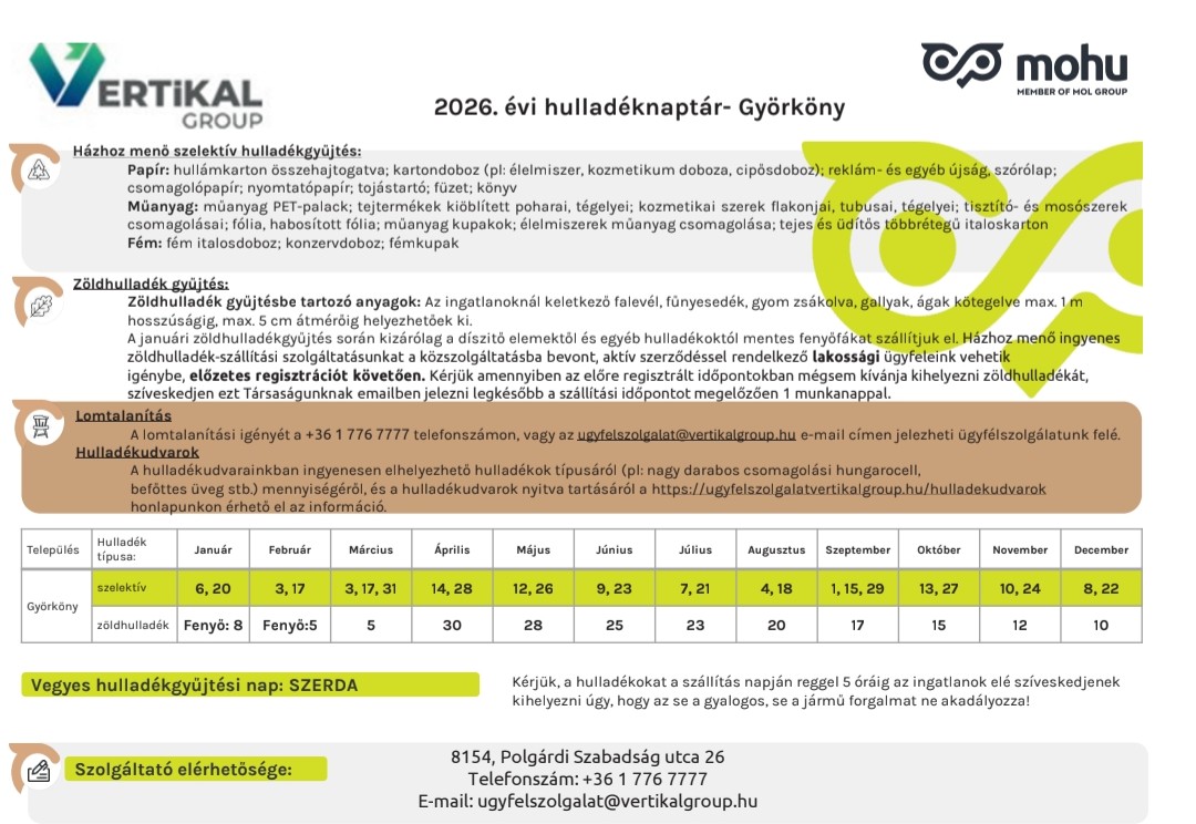 Hulladékszállítási naptár 2026